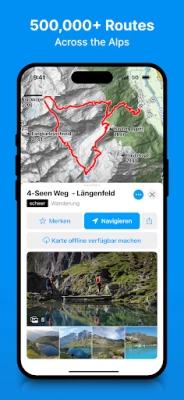 Koe luonto uudella tavalla bergfex hiking app -sovelluksen avulla! Olitpa sitten etsimässä lähialueesi helmiä tai suunnittelemassa seuraavaa suurta seikkailua Alppien rinteillä, bergfex hiking app on luotettava kumppanisi. Sovelluksen laaja, yli 500 000 reitin valikoima kattaa vaellukset, hiihtovaellukset, juoksureitit ja maastopyöräilypolut halki Euroopan. Yksityiskohtaiset kuvaukset ja monipuoliset suodattimet auttavat sinua löytämään juuri tavoitteisiisi sopivan polun, ja tarkka navigointi pitää sinut aina oikealla kurssilla.