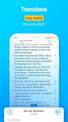 Rikasta lukukokemustasi tuomalla sovellukseen omat FB2- tai EPUB-muotoiset kirjasi ja artikkelisi. Olipa kyseessä englanninkielinen romaani tai kuva-kirja, Parallel Translationin monipuolinen lukija tukee niitä kaikkia. Laaja kielituki mahdollistaa oppimisen englannista kiinaan ja saksasta espanjaan, ja voit mukauttaa käännöskielen asetuksista juuri tarpeisiisi sopivaksi. Sovelluksen intuitiivinen ja käyttäjäystävällinen käyttöliittymä tekee navigoinnista helppoa, ja selkeät symbolit ohjaavat sinua vaivatta eri toimintoihin. Aloita matkasi kohti monikielisyyttä ja anna kirjojen avata uusia ovia maailmaan Parallel Translationin avulla.
