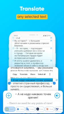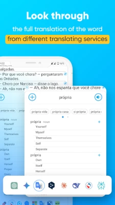 Parallel Translationin ytimessä on edistyksellinen yhden napautuksen käännösominaisuus. Käännä mikä tahansa sana tai lause silmänräpäyksessä hyödyntäen useita tunnettuja palveluita, kuten Google Translate, DeepL, Microsoft, Yandex, Papago tai jopa ChatGPT. Syväymmärrys on käden ulottuvilla: Reverso Context näyttää esimerkkilauseita, jotka havainnollistavat sanan käyttöä eri yhteyksissä, ja voit tallentaa uusia sanoja myöhempää kertausta varten laajentaen sanavarastoasi vaivattomasti. Kuuntele myös äidinkielisten puhujien ääntämystä parantaaksesi kuuntelu- ja puhetaitojasi – kaikki tämä ilman, että sinun tarvitsee vaihtaa sovelluksesta toiseen. Parallel Translation on kokonaisvaltainen ratkaisu kaikkiin käännöstarpeisiisi.