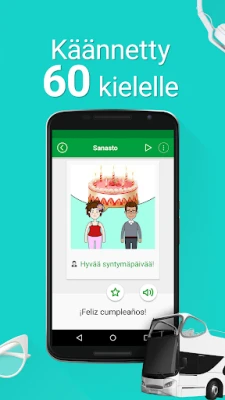 Laajenna sanavarastoasi entisestään käytännöllisten lisätoimintojen avulla. Voit helposti etsiä ja merkitä useimmin tarvitsemasi ilmaisut henkilökohtaiseen fraasisanakirjaasi. Seuraa edistymistäsi ja ansaitse pisteitä taitojesi kehittyessä, tai anna "Sattumanvaraiset kategoriat" -toiminnon yllättää sinut uudella aihealueella ja pelillä. FunEasyLearn, Opi espanjaa -sovelluksen kehittäjä, on tunnettu tehokkaiden ja ilmaisten kieltenoppimisratkaisujen luomisesta. Heidän asiantuntemuksensa takaa, että Opi espanjaa auttaa sinua parantamaan puhumista, kuuntelua ja kielioppia, tehdäänpä sitten matkoista, työstä tai vapaa-ajasta sujuvampaa ja nautinnollisempaa espanjan kielellä.