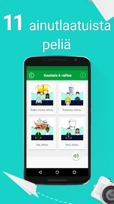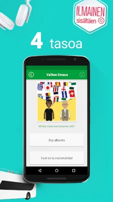 Mikä tekee Opi espanjaa -kokemuksesta niin erottuvan? Sovelluksen avulla voit harjoitella missä ja milloin tahansa, jopa ilman internet-yhteyttä. Jokainen yli viidestä tuhannesta yleisestä ilmauksesta sisältää aidoilta äidinkielisiltä nauhoitetun ääntämisen ja foneettiset transkriptiot, jotka takaavat tarkan ja oikeaoppisen lausumisen. Kehitä kuuntelu-, kirjoitus- ja puhetaitojasi innovatiivisten ja mukaansatempaavien 11 pelin avulla. Edisty neljällä eri oppimistasolla – aloittelijasta asiantuntijaksi – ja syvennä ymmärrystäsi 20 aihepiirin ja 145 alakategorian kautta, aina tervehdyksistä matkustamiseen, ruokailuun ja liike-elämään.