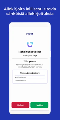 Kirjautuminen Frejaan on vaivatonta ja modernia: voit jättää hyvästit perinteisille salasanoille ja hyödyntää biometristä tunnistusta tai nopeaa QR-koodin skannausta varmistaaksesi pääsyn. Mutta Freja on enemmän kuin pelkkä kirjautumisväline – se on myös henkilöllisyytesi vartija. Sen sisäänrakennettu identiteettisuojaus ilmoittaa sinulle välittömästi kaikista rekisteröityyn osoitteeseesi kohdistuvista muutoksista, antaen sinulle kriittistä aikaa toimia ja suojautua mahdollisilta petoksilta. Lisäksi Freja mahdollistaa laillisesti sitovat digitaaliset allekirjoitukset sopimusten ja suostumusten hoitamiseksi vaivattomasti, ja tarjoaa joustavia ratkaisuja myös organisaatioiden tarpeisiin, erotellen henkilökohtaiset ja työhön liittyvät sähköiset identiteetit. Kaikki henkilötietosi ovat täysin hallinnassasi, ja Freja on Ruotsin valtion hyväksymä ratkaisu, joka noudattaa tarkasti kaikkia henkilötietomääräyksiä, mukaan lukien GDPR:ää, tarjoten selkeän näkymän toimintahistoriaasi ja jakamiisi tietoihin.