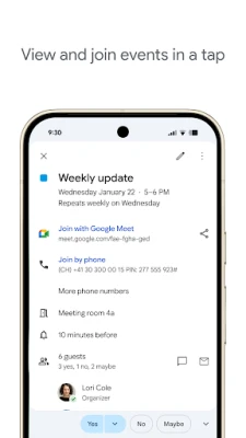 Google Kalenteri on suunniteltu mullistamaan tapasi hallita aikaa ja pysyä ajan tasalla. Se tekee elämästäsi vaivattomampaa poimimalla automaattisesti lentojen, hotellien ja muiden varausten tiedot suoraan Gmailistasi, liittäen ne saumattomasti aikatauluusi. Sukella keskeytyksettömään kokemukseen, olitpa sitten liikkeellä Android-puhelimesi, tablettisi tai Wear OS -laitteesi kanssa, tai työskentelitpä tietokoneellasi – kaikki tietosi synkronoituvat vaivattomasti saman Google-tilin alla. Keskellä kiireistä arkea Google Kalenteri kokoaa myös yhteen muiden kalenteriesi (kuten Exchangen) tapahtumat, tarjoten sinulle selkeän ja yhdistetyn näkymän kaikkiin sitoumuksiisi yhdellä silmäyksellä. Lisäksi voit muokata käyttöliittymän ulkoasua mieleiseksesi tumman tai vaalean tilan avulla ja värikoodata tapahtumia, mikä tuo selkeyttä ja henkilökohtaista ilmettä kalenteriisi.
