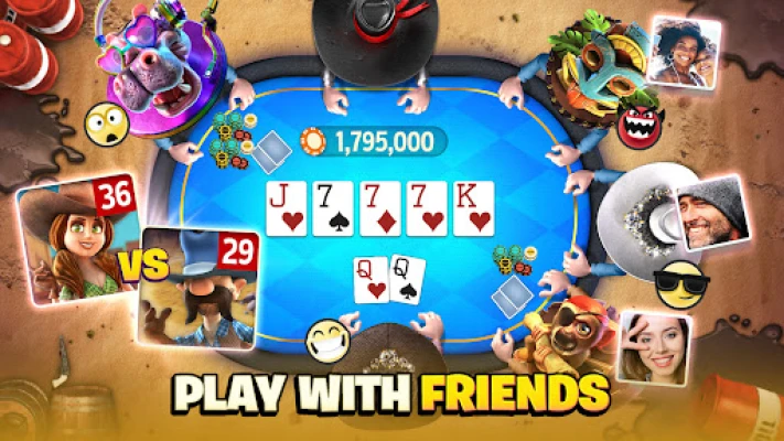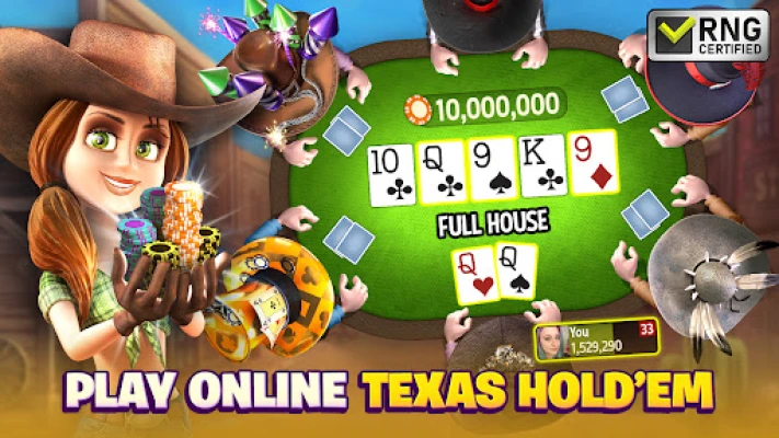 Jokainen Governor of Poker 3 -pelaaja aloittaa seikkailunsa muhkealla tervetuliaispaketilla, joka sisältää ilmaisia pelimerkkejä, kultaa ja ainutlaatuisia avatar-hattuja. Lisäksi tarjolla on säännöllisesti ilmaisia pelimerkkejä, jotta pelit eivät lopu kesken. Hio pokeritaitojasi suorittamalla jännittäviä tehtäviä ja ansaitsemalla arvostettuja sormuksia, arvomerkkejä ja saavutuksia. Käytä pelin sisäistä chattia ja hauskoja hymiöitä bluffataksesi tai pilataksesi vastustajiasi, ja lue heidän pokerikasvonsa voittaaksesi pöydän. Pelaa saumattomasti millä tahansa laitteella – olipa kyseessä puhelin, tabletti tai tietokone – ja jatka peliäsi juuri siitä, mihin jäit. Fair play on taattu sertifioidun RNG:n ansiosta, varmistaen tasapuoliset kortit ja aidon pokerielämyksen joka kerta.