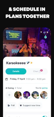 Unohda ryhmäkeskustelujen sotku ja jatkuva kysely, kuka ehtii milloin. Howboutin avulla jaat kalentereita ja löydät yhteiset vapaat hetket vaivattomasti. Jokaiselle suunnitelmalle ja ystävän kalenterille voit valita oman värikoodinsa, mikä tekee kokonaisuudesta selkeän ja visuaalisesti miellyttävän. Luodessasi tapahtumia, voit liittää niihin kaikki tarvittavat yksityiskohdat: muistiinpanoja, sijainteja, muistutuksia, kyselyitä, lähtölaskenta-ajastimia ja jopa hauskoja kuvia tai GIF-animaatioita. Yksityisyys on myös tärkeää: voit hallita tarkasti, kuka näkee mitäkin kalenterissasi. Lisäksi jokaisessa suunnitelmassa ja ryhmässä on sisäänrakennettu chat, joten kaikki keskustelut pysyvät samassa paikassa.