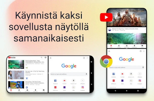 Tehosta päivittäistä laitteesi käyttöä ennennäkemättömällä tavalla. Tämä uraauurtava ratkaisu mahdollistaa kahden sovelluksen samanaikaisen käytön yhdellä näytöllä, mullistaen moniajon ja tuottavuuden. Olitpa sitten vastaamassa viesteihin samalla kun seuraat videota tai selaamassa sosiaalista mediaa ja suunnittelemassa päivääsi, saumaton jaetun näytön toiminto on nyt kaikkien laitteiden ulottuvilla. Unohda jatkuva sovellusten välillä vaihtaminen ja koe uudenlainen tehokkuus suoraan käsissäsi.