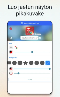 Jaettu näyttö mahdollistaa kahden sovelluksen samanaikaisen käytön puhelimen näytöllä. Tämä sovellus tuo jaetun näytön toiminnon kaikille laitteille, helpottaen moniajoa ja tehostaen käyttöä. Mukauta myös sovelluskuvakkeita laajalla valikoimalla.