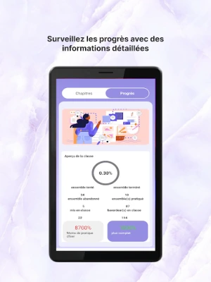 Sukella interaktiivisten tietovisojen maailmaan, jotka on räätälöity jokaisen luvun ymmärtämiseksi ja nopeaan hallintaan. Älykkään järjestelmämme ansiosta visat mukautuvat automaattisesti juuri sinun tasoosi; vaikeusaste kasvaa tai laskee tulostesi perusteella, varmistaen aina optimaalisen haasteen ja henkilökohtaisen työohjelman. Ei enää turhautumista liian vaikeisiin tai tylsistymistä liian helppoihin tehtäviin! Moderni, värikäs ja nuorten maailmasta inspiroitu käyttöliittymä tekee oppimisesta visuaalisesti miellyttävää, ja dynaaminen palkitsemisjärjestelmä kannustaa jatkuvaan kehitykseen ja aktiivisuuteen, tehden jokaisesta opiskeluhetkestä stimuloivan kokemuksen.
