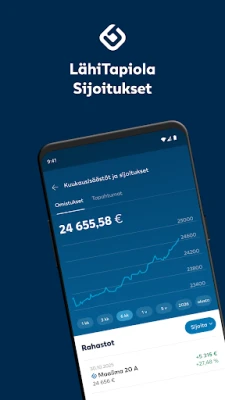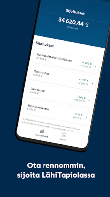 Pidä sijoitustesi pulssi hyppysissäsi, missä ikinä liikutkin. LähiTapiola Sijoitukset -sovellus tarjoaa vaivattoman tavan seurata varallisuutesi kehitystä ja pysyä ajan tasalla sijoitustesi tilanteesta. Tämä innovatiivinen työkalu on suunniteltu tuomaan läpinäkyvyyttä ja mielenrauhaa taloudelliseen arkeen, antaen sinulle mahdollisuuden tarkastella sijoitustietojasi juuri silloin, kun se sinulle parhaiten sopii ja oman aikataulusi mukaan.