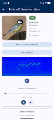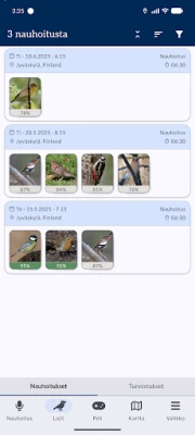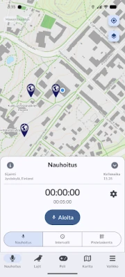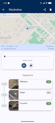 Muuttolintujen kevätseurannassa osallistuminen on vaivatonta ja palkitsevaa. Voit tallentaa luonnon ääniä valintasi mukaan – olipa kyseessä lyhyt hetkellinen havainto, pidempi intervallitallenne tai pistemäinen äänitys. Tallenteet, yhdessä tarkkojen sijaintitietojen kanssa, välittyvät palvelimellemme, joka hyödyntää edistyksellistä äänentunnistusteknologiaa lintulajien määrittämiseen. Saat nopeasti tiedon tunnistetuista lajeista takaisin suoraan sovellukseen. Kaikki havaintosi näkyvät lisäksi anonyymisti sovelluksen interaktiivisella kartalla, muodostaen yhteisen, elävän kuvan luonnon monimuotoisuudesta.