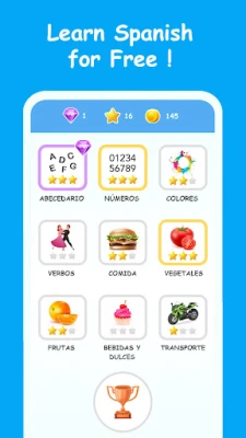 "How to Learn Spanish free! The learning game for beginners 🇪🇸" tarjoaa rikkaan 500 sanan sanaston, jokaisen sanan tukena havainnollistava kuva ja selkeä äänite, mikä tekee uuden vokabulaarin omaksumisesta tehokasta. Sovellus sisältää kattavat oppitunnit ja harjoitukset, jotka keskittyvät niin lukutaidon, kirjoitustaidon kuin puhumisenkin harjoittamiseen. Jokainen 36 aiheesta on jaettu kolmelle eri tasolle – Perustaso (esim. aakkoset, numerot), Keskitaso (esim. viikonpäivät, eläimet) ja Edistynyt taso (esim. urheilu, joulu) – varmistaen, että löydät aina itsellesi sopivan haasteen. Oppimista syvennetään neljällä interaktiivisella aktiviteetilla ja aihekohtaisella kokeella.