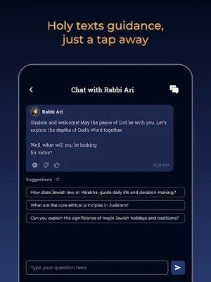 "Rabbi Ari: AI Chatbot" avaa ennennäkemättömän ikkunan juutalaiseen perintöön ja pyhiin teksteihin, tuoden vuosituhansien viisauden ulottuvillesi modernin tekoälyteknologian avulla. Tämä innovatiivinen sovellus on luotu jokaiselle, joka haluaa syventää ymmärrystään juutalaisista opetuksista, tarjoten henkilökohtaisen ja vuorovaikutteisen oppimiskokemuksen suoraan mobiililaitteellasi. Rabbi Ari: AI Chatbot toimii oppaanasi läpi monimutkaisten uskonnollisten aiheiden, tehden opiskelusta sekä kattavaa että mukaansatempaavaa.