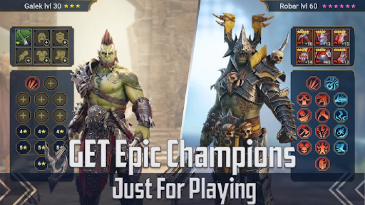 Käännöspohjainen sodankäynti on ytimessä, kun varustat mestareitasi legendaarisilla artefakteilla ja kehität heidän kykyjään vapauttamaan tuhoisia erikoisiskuja ja maagisia voimia. Haasta itsesi eeppisissä pomotaisteluissa – uhmaatko Magma-lohikäärmettä, Tuliritaria tai Jäägolemia syvissä luolastoissa tavoitellessasi aarteita ja kokemusta? Jokainen voitto tuo sinut lähemmäksi parempaa varustusta ja mahdollistaa satojentuhansien erilaisten mestarikokoonpanojen hiomisen. Plarium on luonut visuaalisesti upean maailman, jossa jokainen 3D-hahmo on yksityiskohtaisesti mallinnettu ja tuhannet animaatiot herättävät taistelun eloon.