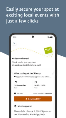 **South Tyrol Travel Guide** varmistaa, ettei mikään jää huomaamatta lomallasi. Patikkareiteistä ja pyöräilypoluista aina lumoaviin kulttuuritapahtumiin ja paikallisiin herkkuihin – sovellus kattaa kaiken. Se on suunniteltu muuttamaan jokaisen käynnin unohtumattomaksi elämykseksi, tarjoten sinulle työkalut tutustua Etelä-Tirolin monipuoliseen tarjontaan perinpohjaisesti. Jos sinulla on kysyttävää tai tarvitset apua, voit ottaa meihin yhteyttä osoitteella [email protected].