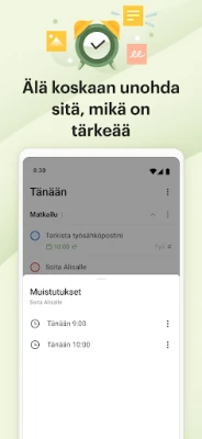 Koe Todoistin intuitiivinen ja kauniisti muotoiltu käyttöliittymä Android-laitteellasi, tabletillasi ja jopa Wear OS -älykellollasi. Tehokkaat widgetit, kuten Tehtäväluettelo ja Pikalisäys, pitävät tärkeät tiedot aina käden ulottuvilla, ja älykkäät ilmoitukset varmistavat, ettet koskaan unohda mitään. Pysy synkronoituna kaikkien laitteidesi välillä ja hyödynnä Pro-suunnitelman sijaintipohjaisia muistutuksia, jotta tehtävät muistuvat mieleen juuri oikeassa paikassa. Todoist on suunniteltu auttamaan sinua kaikessa päivä- ja viikkosuunnittelusta vaativiin projektinhallintahankkeisiin, ostoslistoista ADHD-suunnittelijan tarpeisiin – tuoden selkeyttä ja mielenrauhaa jokaiseen elämänalueeseesi.