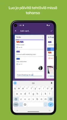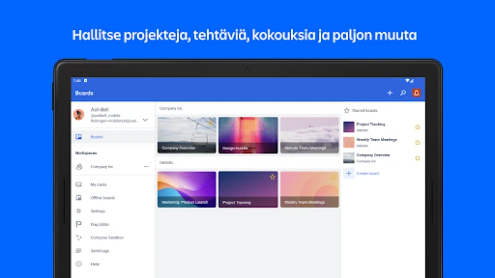 Trello auttaa sinua hallitsemaan projektejasi ja pysymään järjestyksessä töissä ja kotona. Luo tauluja, kortteja ja tehtävälistoja, tee yhteistyötä tiimisi kanssa ja tehosta työnkulkuasi helposti.