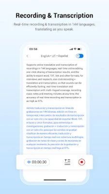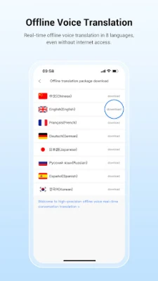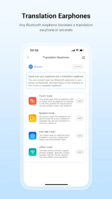 Käännöskokemuksen tehostamiseksi WOOASK APP esittelee mullistavan ominaisuuden: kyvyn muuntaa mitkä tahansa Bluetooth-kuulokkeesi käännöskuulokkeiksi sekunneissa. Yhdistä omat langattomat kuulokkeesi WOOASK APPiin, ja ne muuttuvat välittömästi älykkääksi viestintätyökaluksi. Kun keskustelette, kumpikin osapuoli voi pitää yhtä nappikuuloketta, mikä tekee käännöstoiminnosta äärimmäisen kätevän ja dialogista luonnollisempaa. Offline-tila tukee jo kahdeksaa yleisintä kieltä, kuten kiinaa, englantia, japania, koreaa, venäjää, saksaa, ranskaa ja espanjaa, varmistaen sujuvan vuoropuhelun missä tahansa.